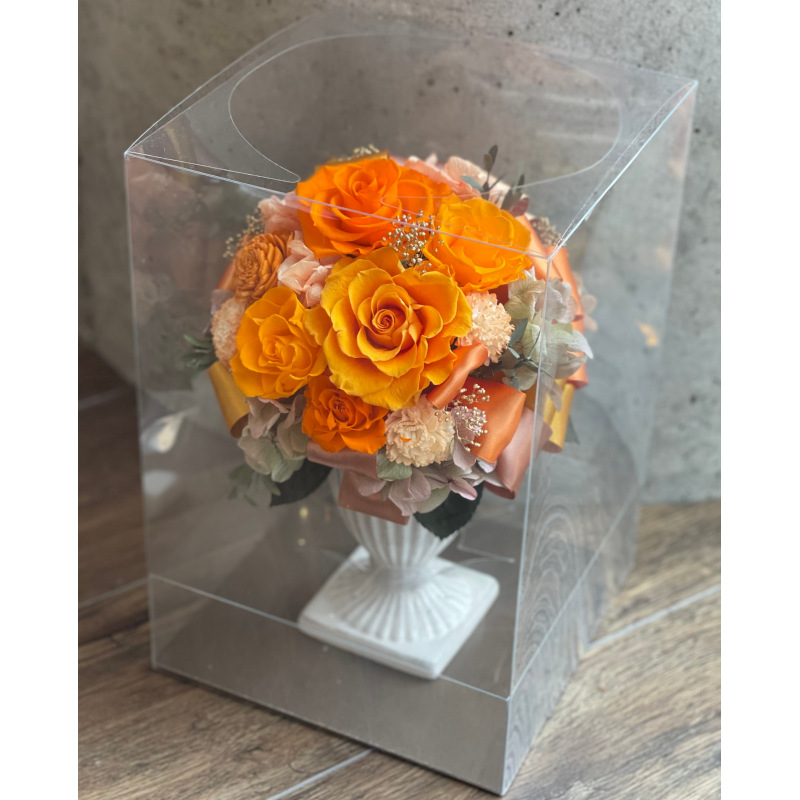 サロンや店舗のディスプレイはもちろん、お供えやプレゼントにも喜ばれるプリザーブドフラワー。コンパクトサイズで作ったので場所を選ばず飾っていただけます。誕生日や記念日などの特別な日のプレゼントとしても喜ばれますよ。