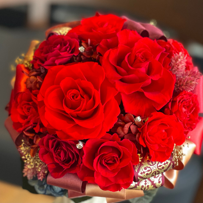 クラシカルで豪華な雰囲気に仕上げたアレンジメント。サロンや店舗のディスプレイはもちろん、テーブルコーディネートにも素敵な真っ赤なバラのプリザーブドフラワーです。ホテルなどで見かける豪華な空間を演出してくれます。誕生日や記念日などの特別な日のプレゼントとしても喜ばれますよ。