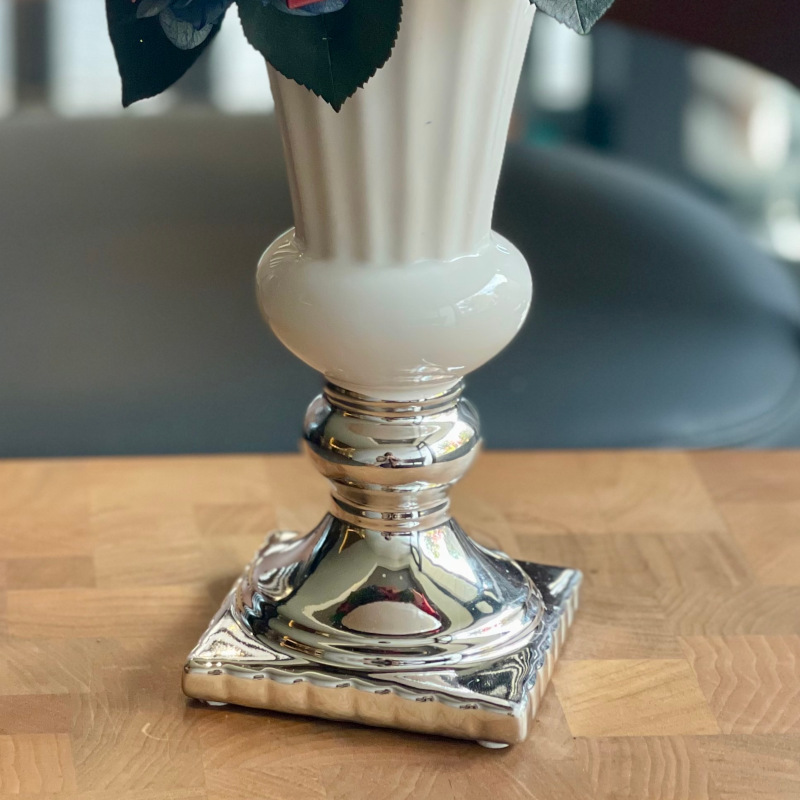 プリザーブドフラワーと可愛いホワイト花器を組み合わせたアレンジメント。