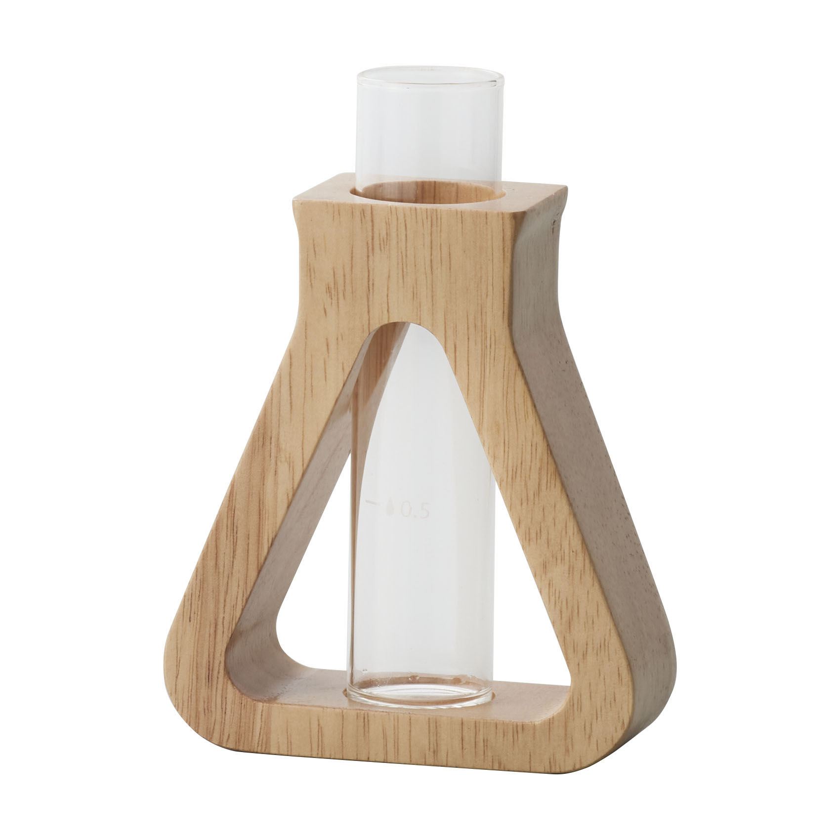 実験器具をモチーフにした一輪挿し。ガラスの管は取り外せるの洗ったりする際に便利です。ガラスの管には水を入れるメモリが付いていて、浅水と深水の目安となります。また付属のスポイドを使えば、延命剤の量が測れ、メモリの水の量に対してピッタリ希釈することが出来ます。まるで実験を楽しむように花を飾れます。