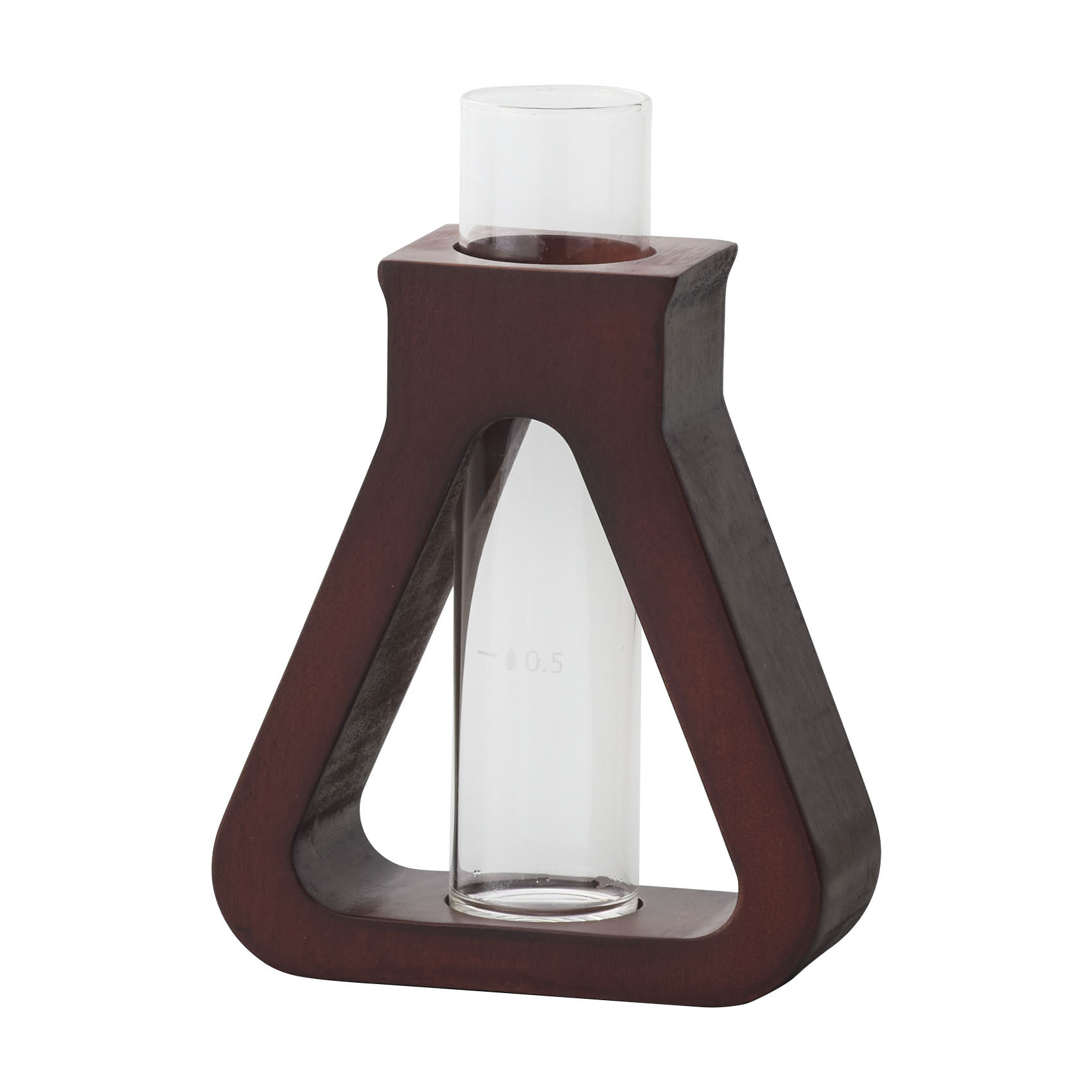 実験器具をモチーフにした一輪挿し。ガラスの管は取り外せるの洗ったりする際に便利です。ガラスの管には水を入れるメモリが付いていて、浅水と深水の目安となります。また付属のスポイドを使えば、延命剤の量が測れ、メモリの水の量に対してピッタリ希釈することが出来ます。まるで実験を楽しむように花を飾れます。