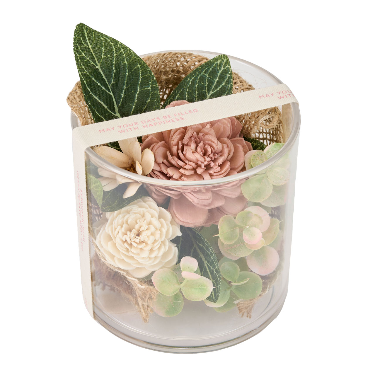 ピンクのアレンジメントと、桜の香りの線香セットにしたフューネラルアレンジ。