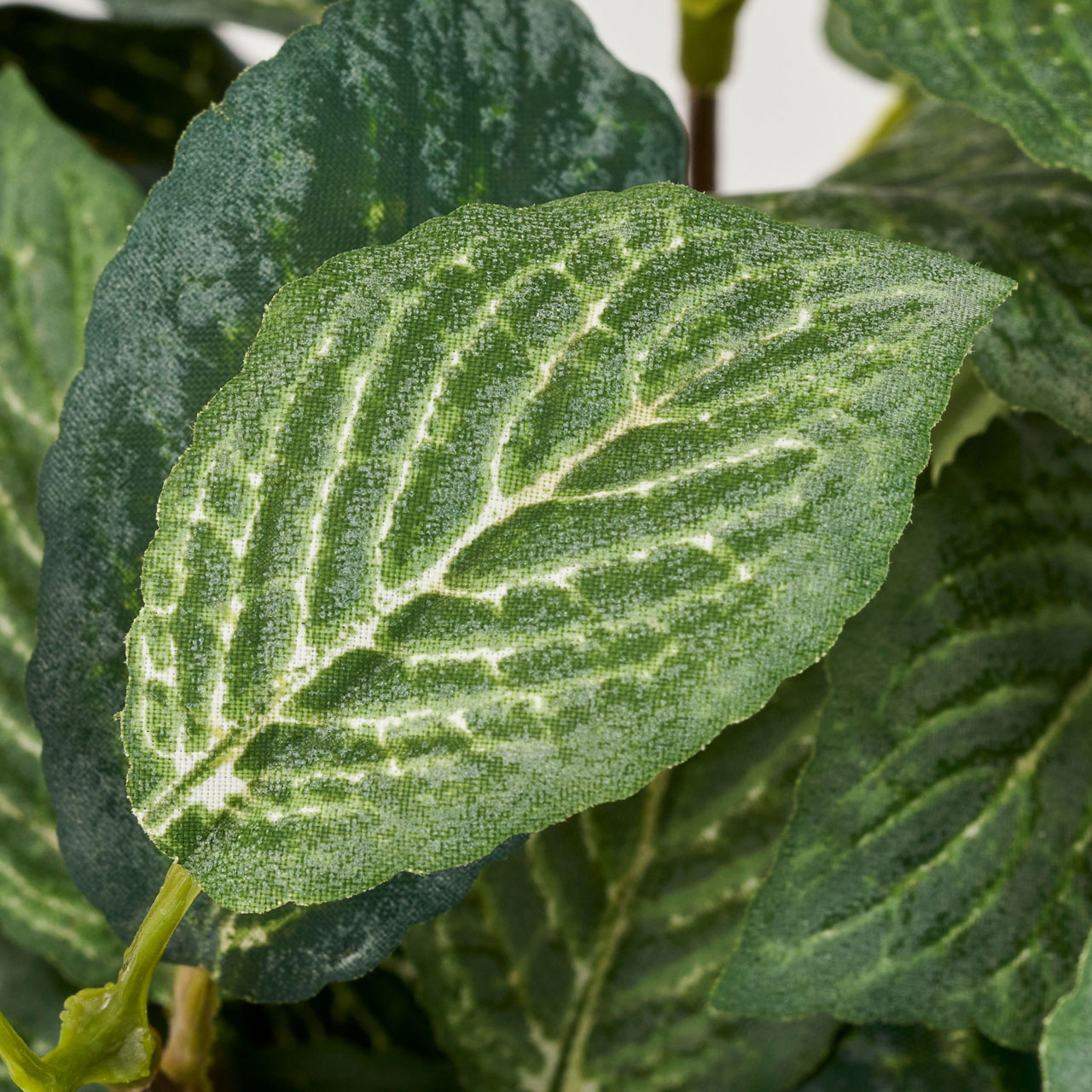 フィットニアポットのアーティフィシャルフラワー(造花)です。人気型のミニポットに新顔登場!網目模様のようなくっきりとした葉脈が特徴的。繊細で美しい葉模様が室内でコンパクトに楽しめるのでおすすめです。