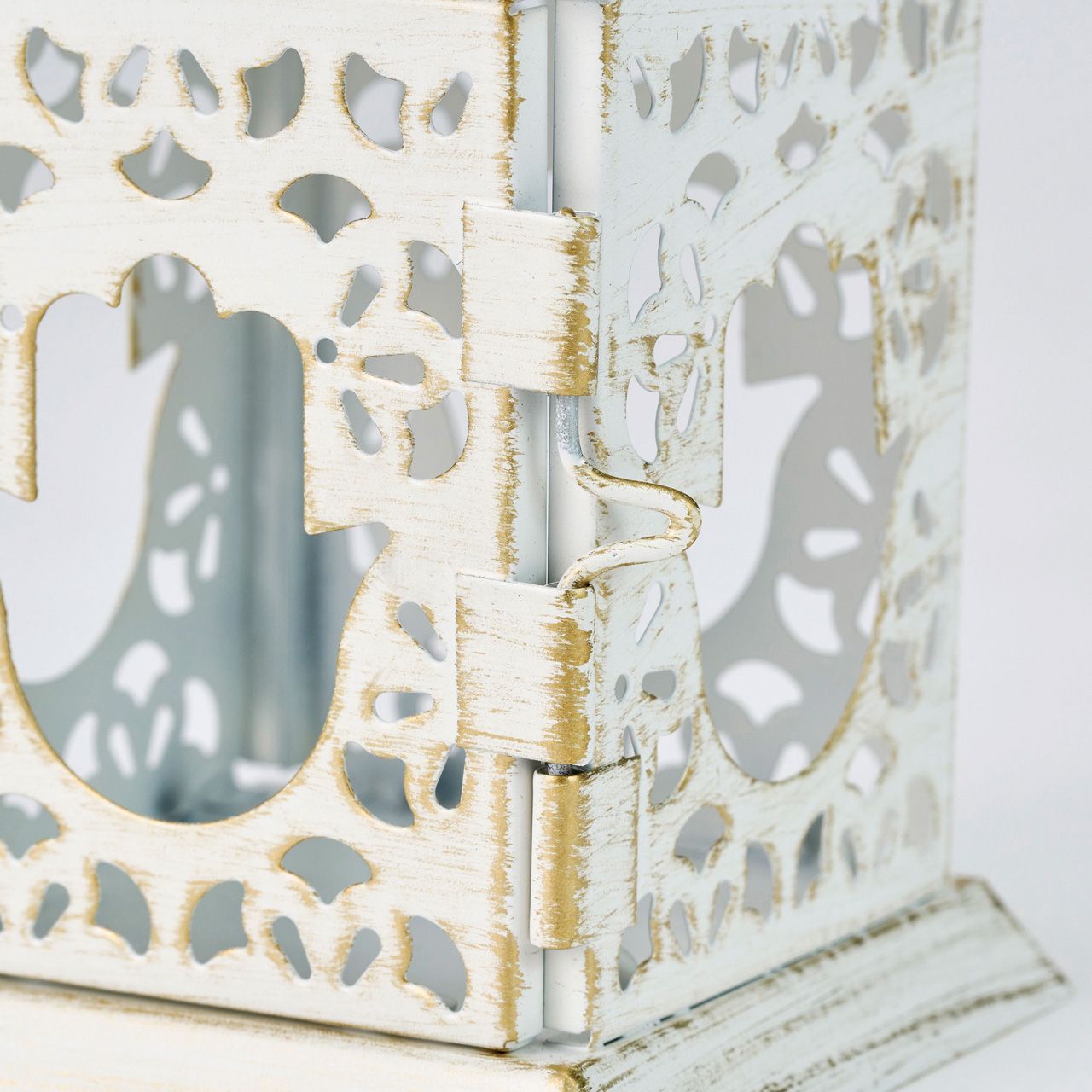 アイアンをアンティーク調に仕上げホワイト&ゴールドに色付けされたランタン風のオブジェ。ミニサイズなのでそのまま飾ったり、LEDキャンドルやお花をアレンジメントして一緒に飾ってもお洒落です。ゴールドブラッシュ加工されており、イベントやウェディングなど特別なシーンでもエレガントな印象です。