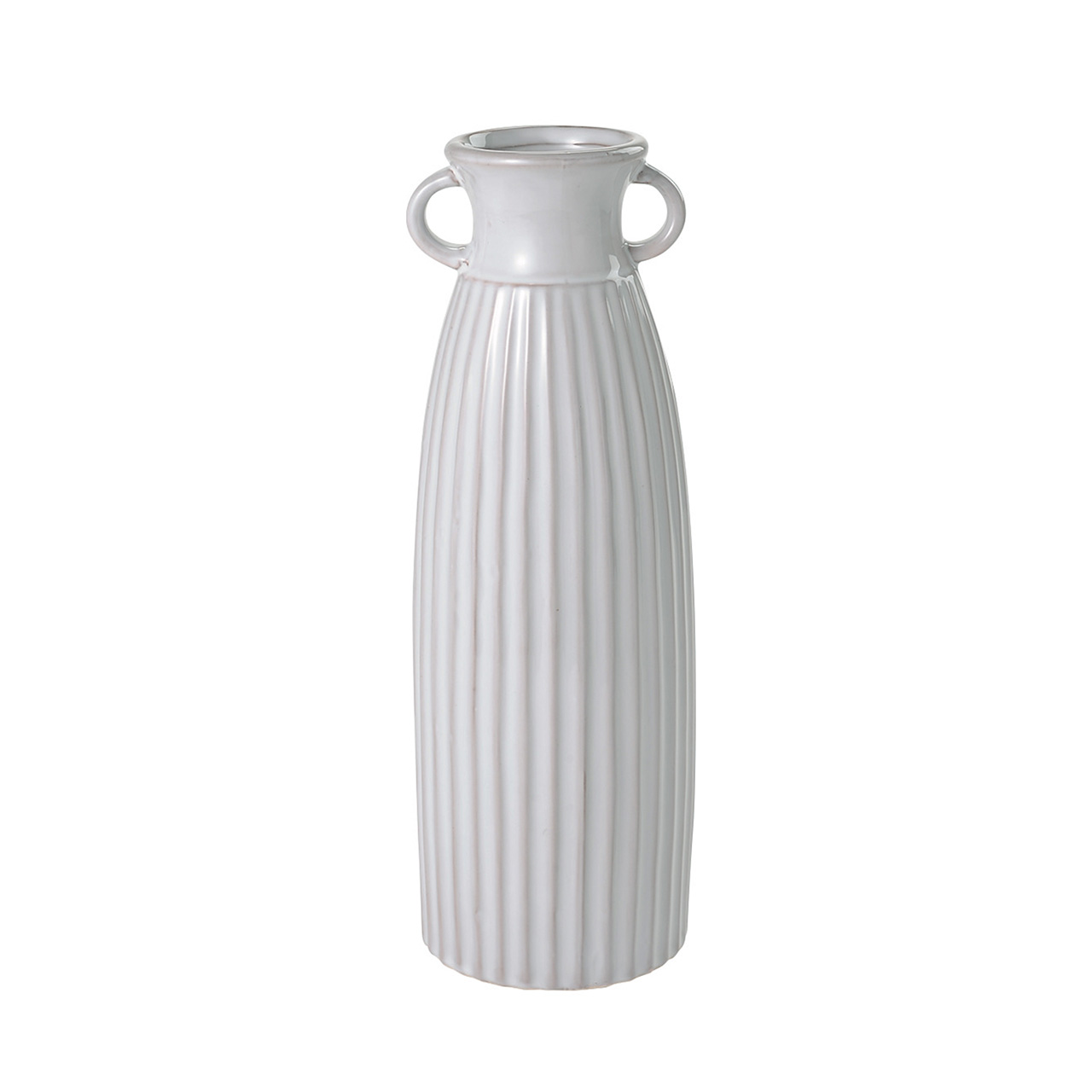 水回りのイメージに合うピッチャー型の愛らしい陶器製の花瓶。グレーカラーが都会的な雰囲気を醸し出します。陶器は釉薬の下地にペイントを施しナチュラルテイストを表現しているため、釉薬のムラ感やピンホールは自然な質感として残しております。