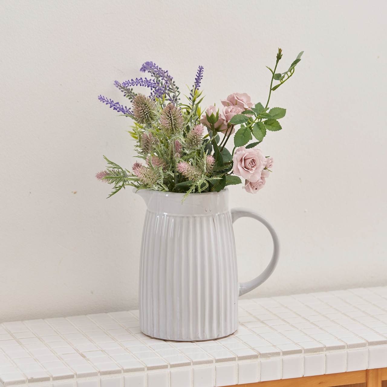 ピッチャー型のフレンチスタイル陶器製花瓶(グレー)