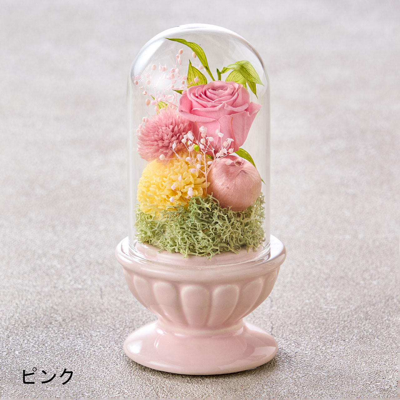 プリザーブドフラワーは非常にデリケートなお花です。手や物に触れると、花びらがつぶれたり切れたりする場合がございますので、お取り扱いにはご注意ください。生花加工品ですので色や風合いが画像とは異なる場合がございます。