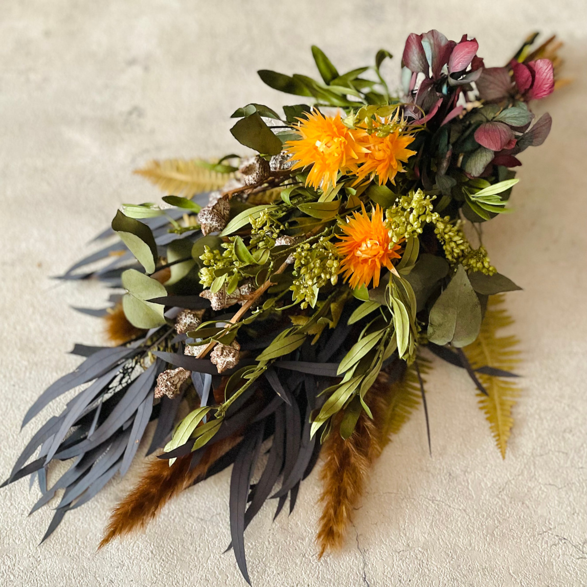 | 注意事項 | ※全て手作りで製作しております。 ※自然素材のため、葉や花びら、実が若干落ちる場合がございますが、これは商品不良ではありませんので予めご了承下さい。 ※北海道、沖縄、離島は別途送料が必要となります。 ※手作業での制作の為、掲載写真の色やサイズが多少異なる場合もございます。 |