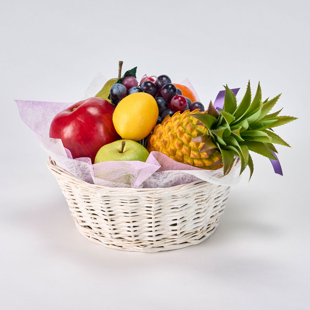パイナップル、リンゴ、レモン、ぶどうなどを使った豪華なフルールアレンジメント。