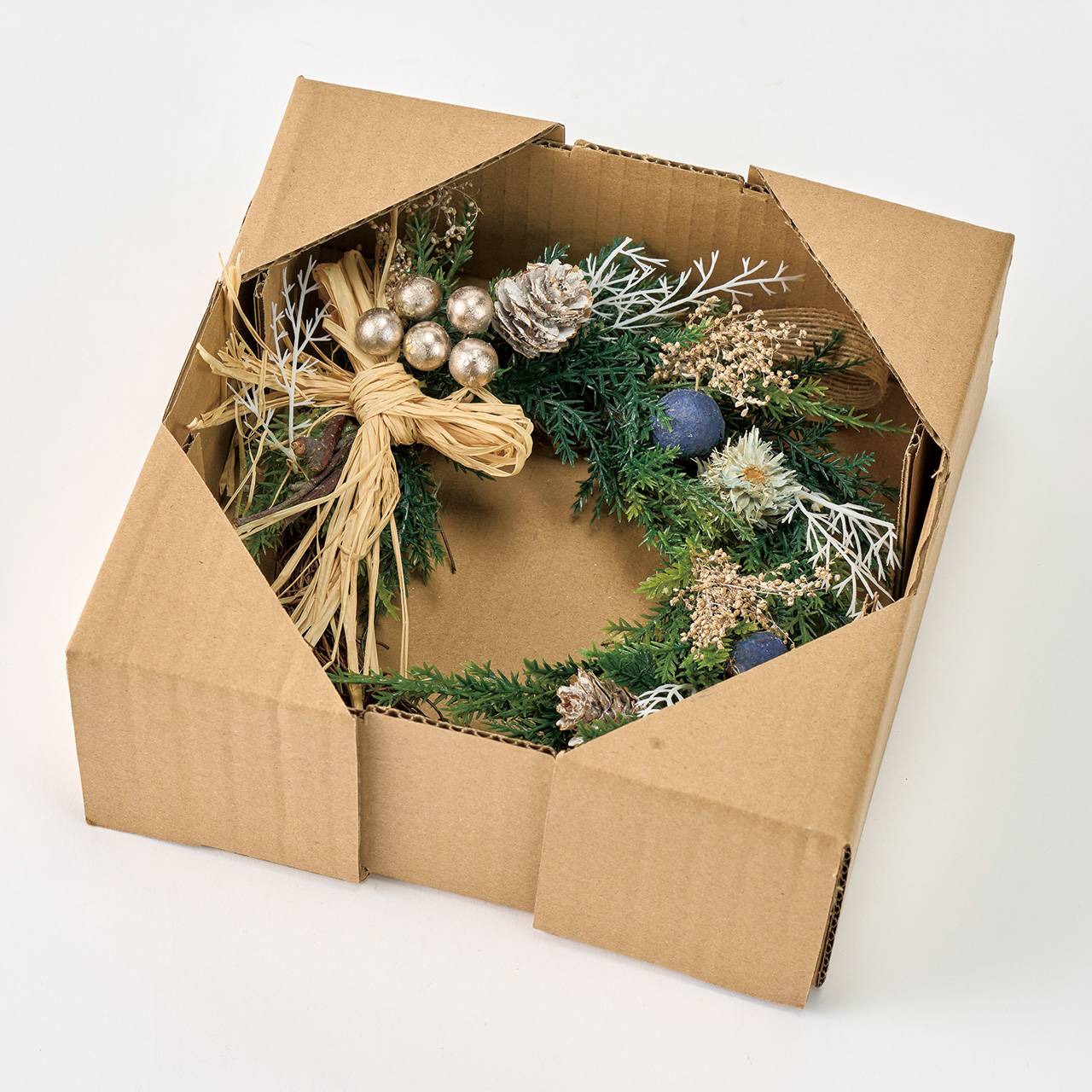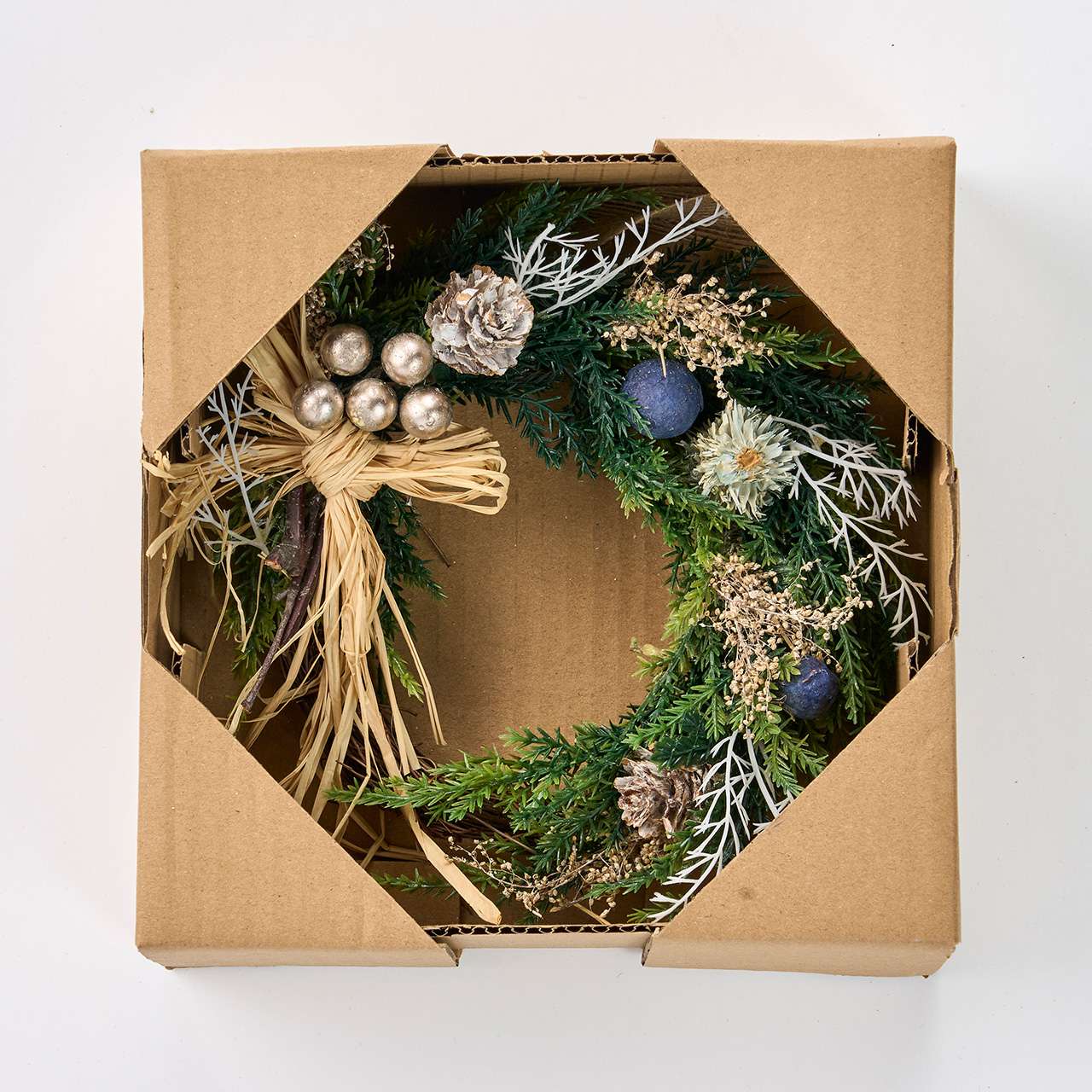簡易ボックス入りのアーティフィシャルクリスマスリースです。