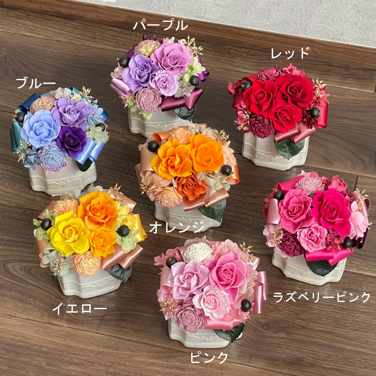 飾りやすい7色展開のアレンジメント