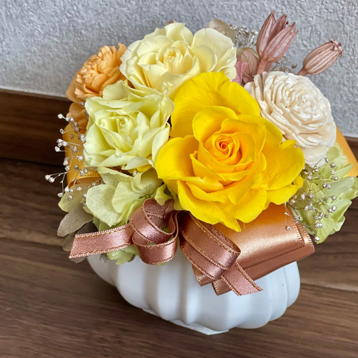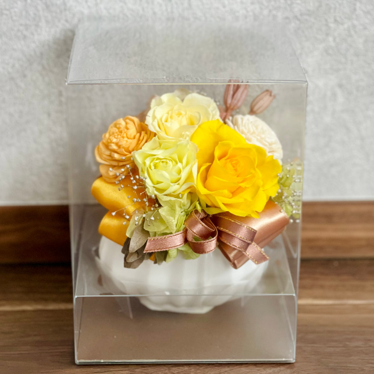 可愛いくデザインしたプリザーブドアレンジメント(イエロー)