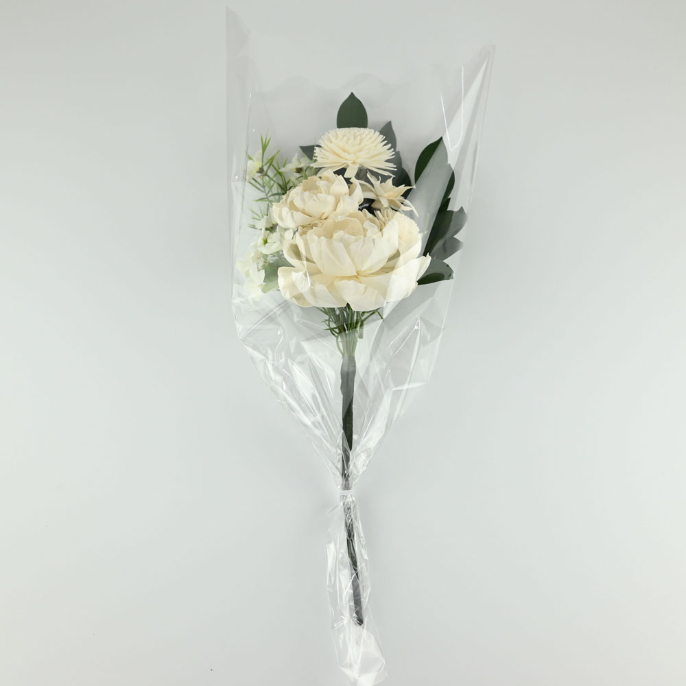 ソラフラワーをメインに使った仏花。 ホワイトをメインにした上品な色合いで仕上げました。OPPの袋入りとなります。