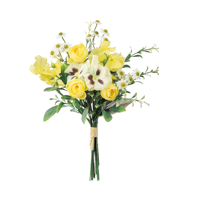 春らしいイエローカラーのブーケは、そのまま花器にいれて飾ったり、束をばらしてフラワーアレンジメントに使用したり、インテリアのワンポイントに春らしい演出はいかがですか。