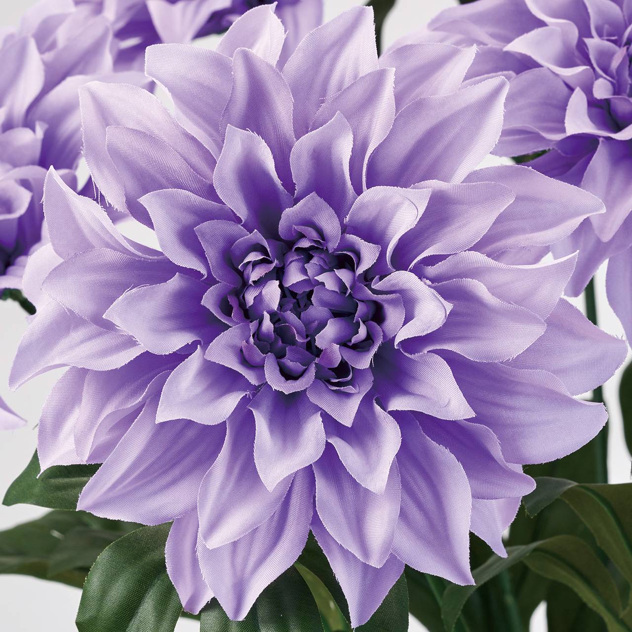 同一サイズのダリアを7輪使ったエレガントなブッシュ。綺麗なパープルとホワイトの2色展開。アーティフィシャルフラワーなのでお手入れも必要ないので末永くお使いいただけます。