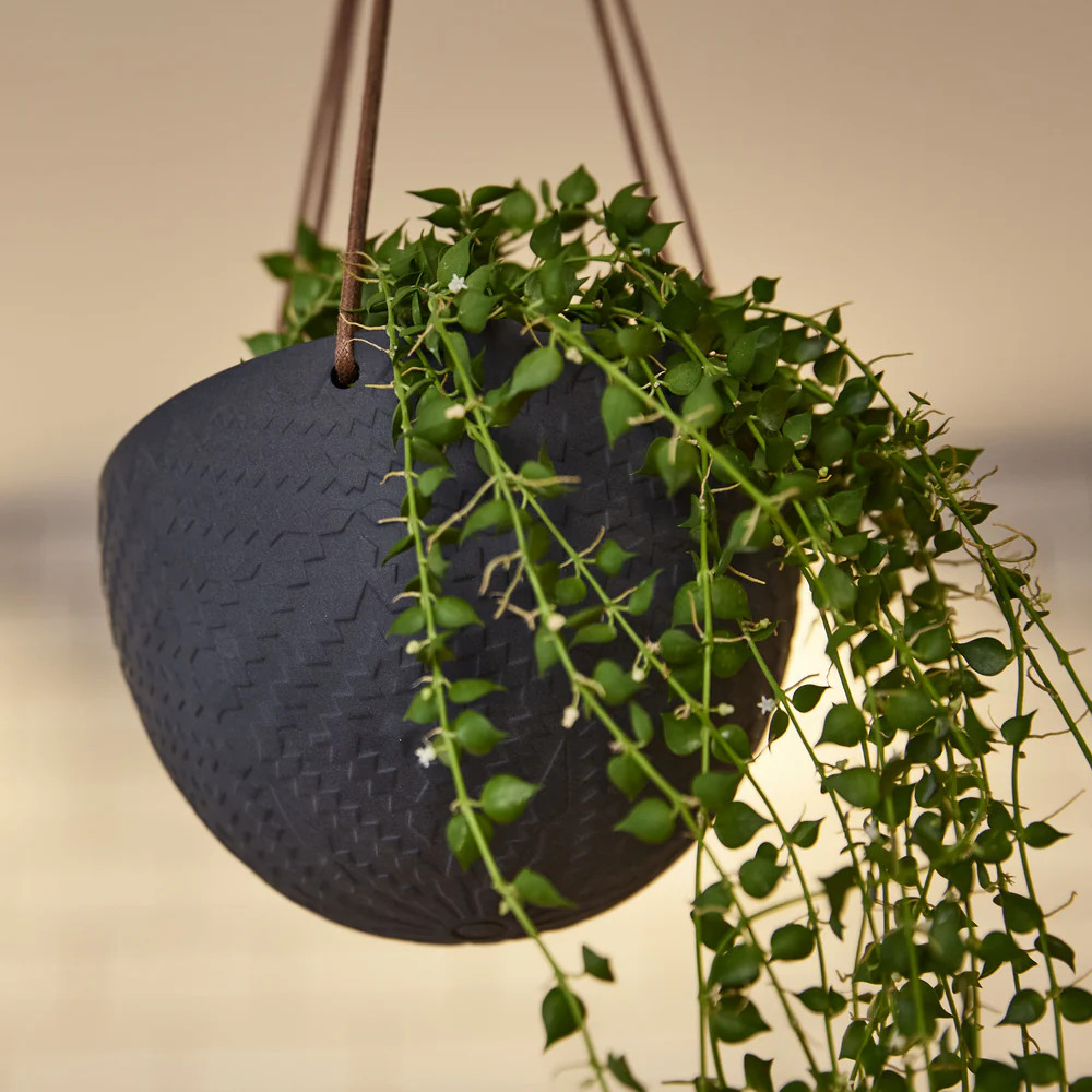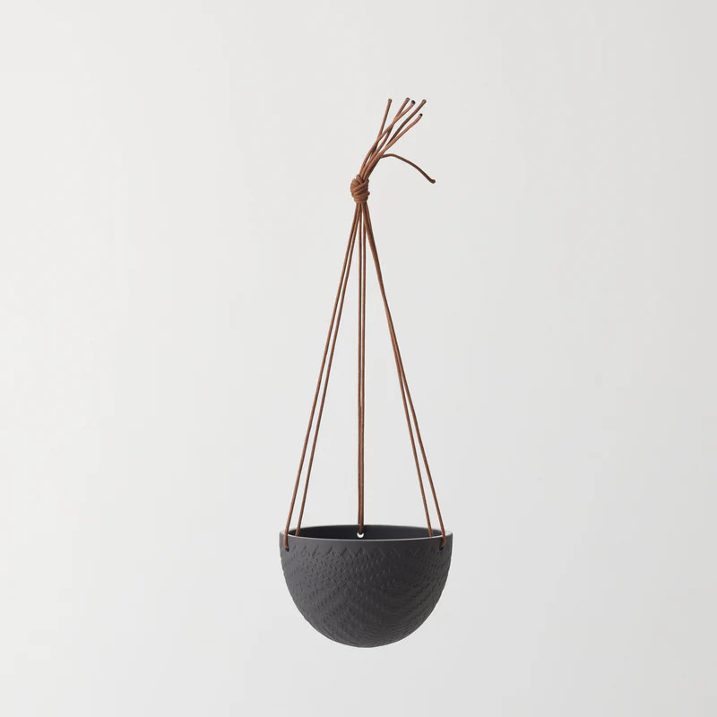 モノトーンでインテリアに馴染みやすいのが特徴ですが、マットな質感の磁器の表面に複雑な模様をあしらい、繊細な表情をみせるデザインが魅力的。ハンギングされることを想定してデザインされているので、下から見上げると美しい模様が見えるよう底面がラウンドの仕上げです。