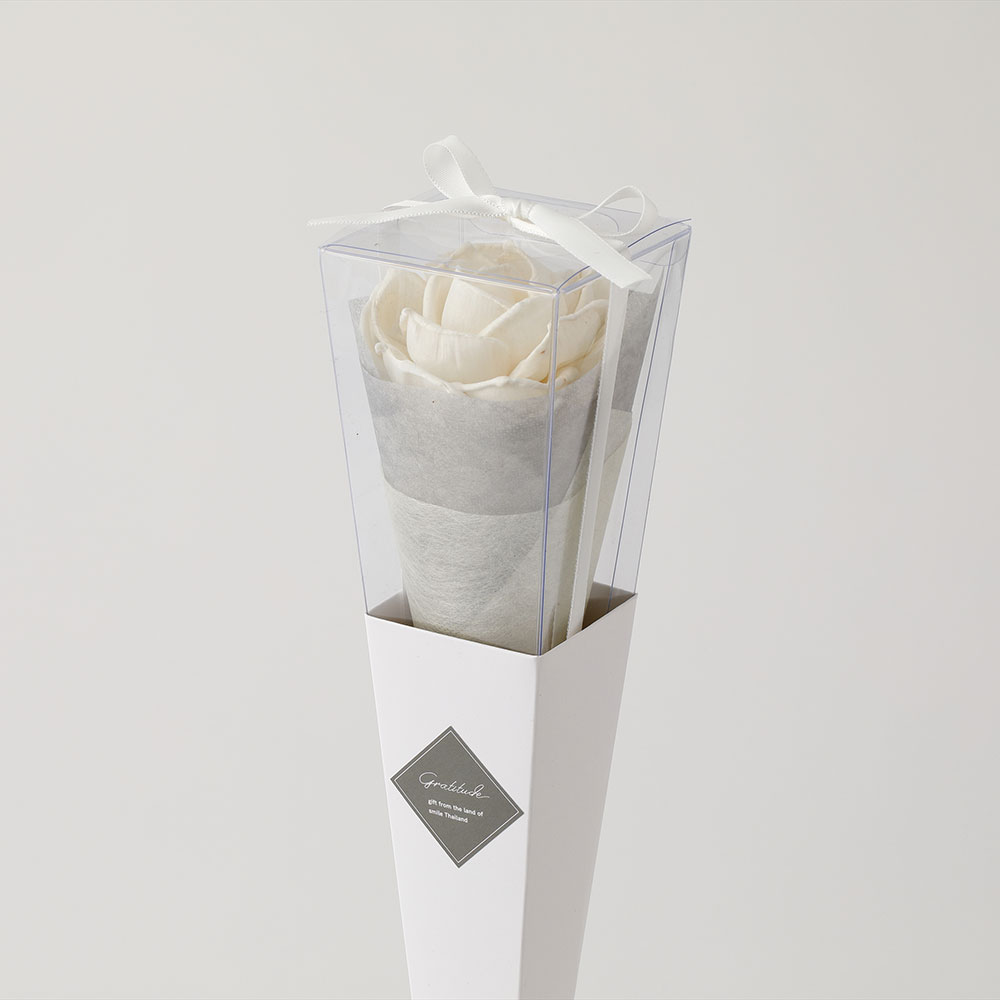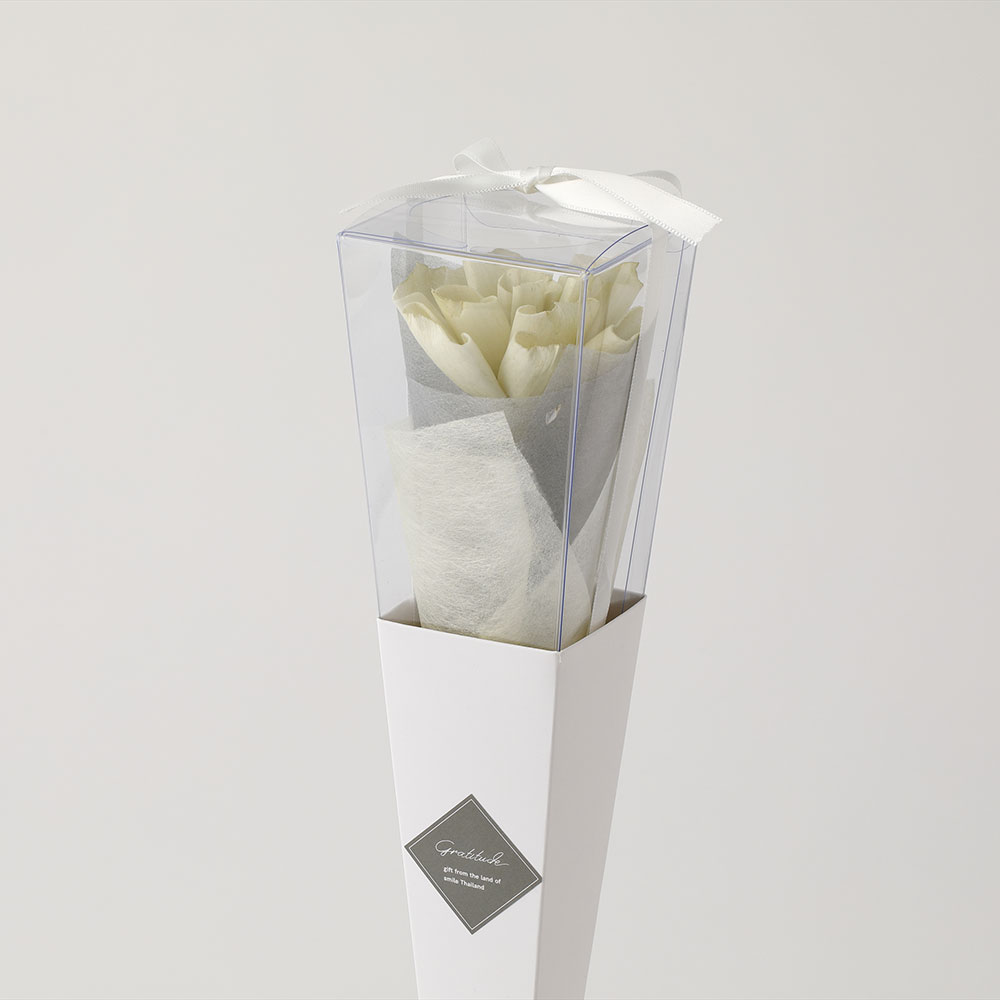 プリザーブドフラワーと可愛いホワイト花器を組み合わせたアレンジメント。