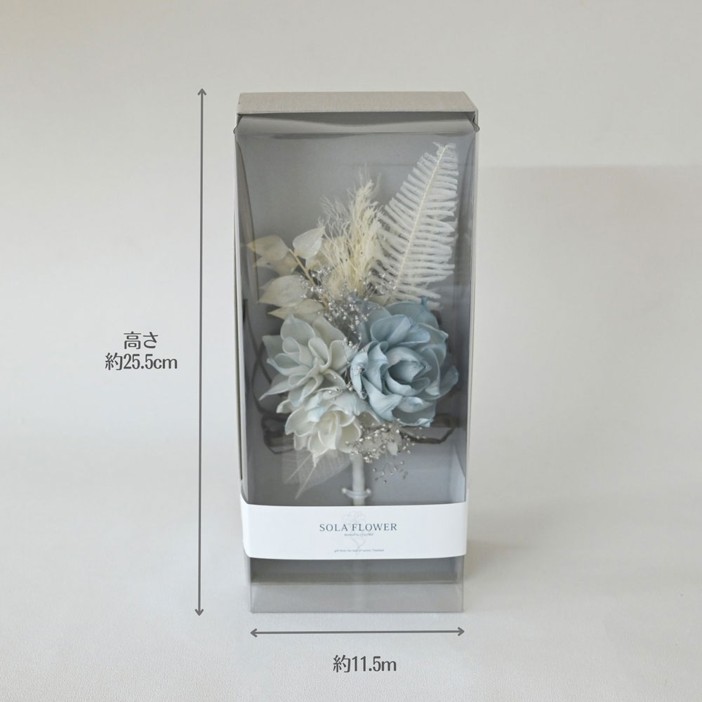 正方形のボックスにプリザーブドフラワーを敷き詰め、写真と一緒に飾れるお洒落なアイテム。