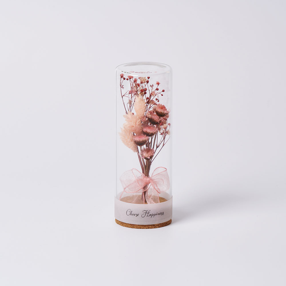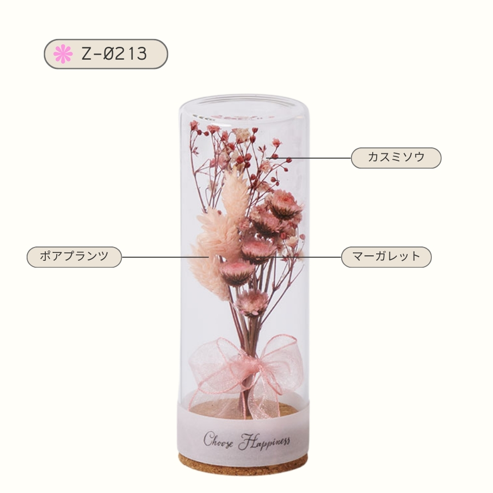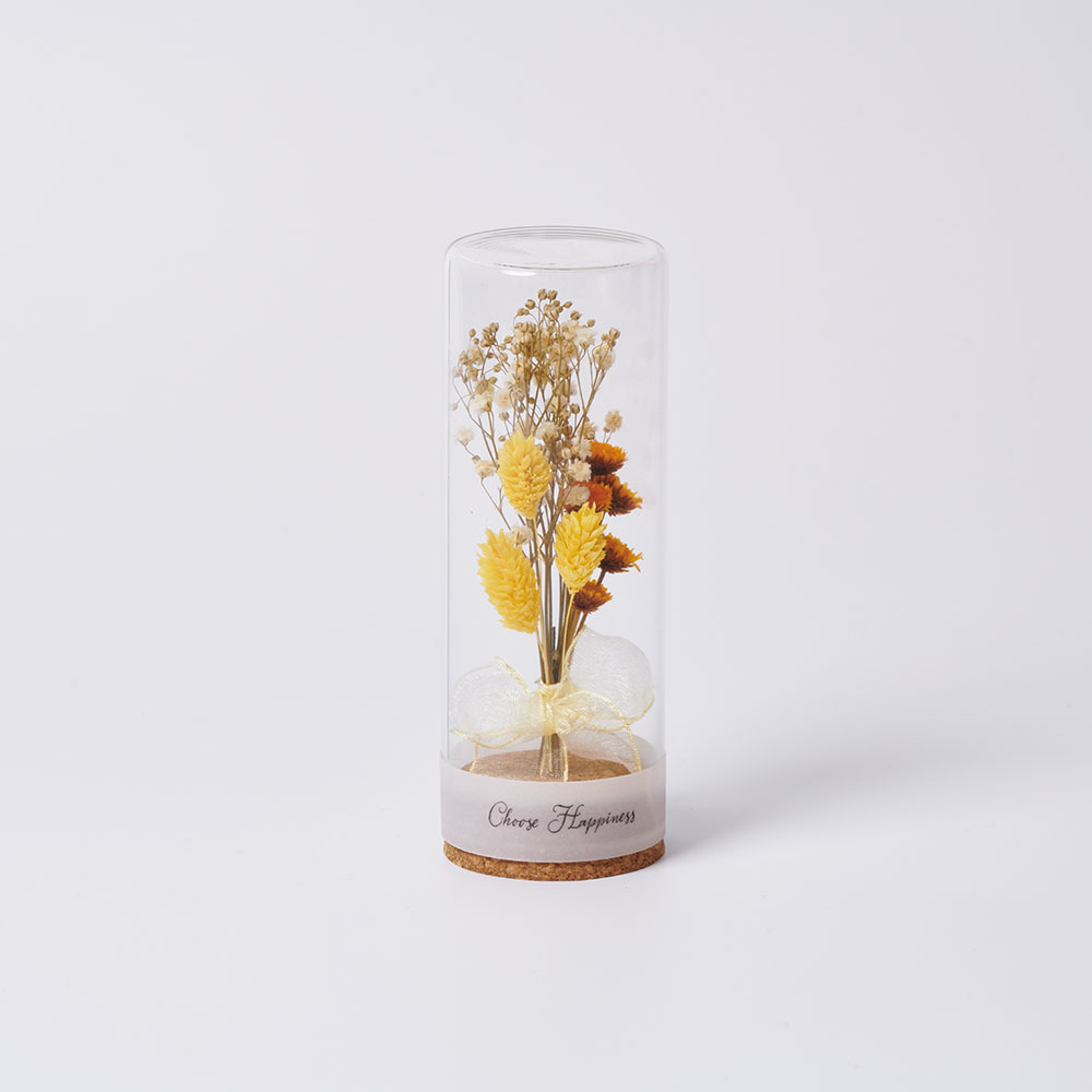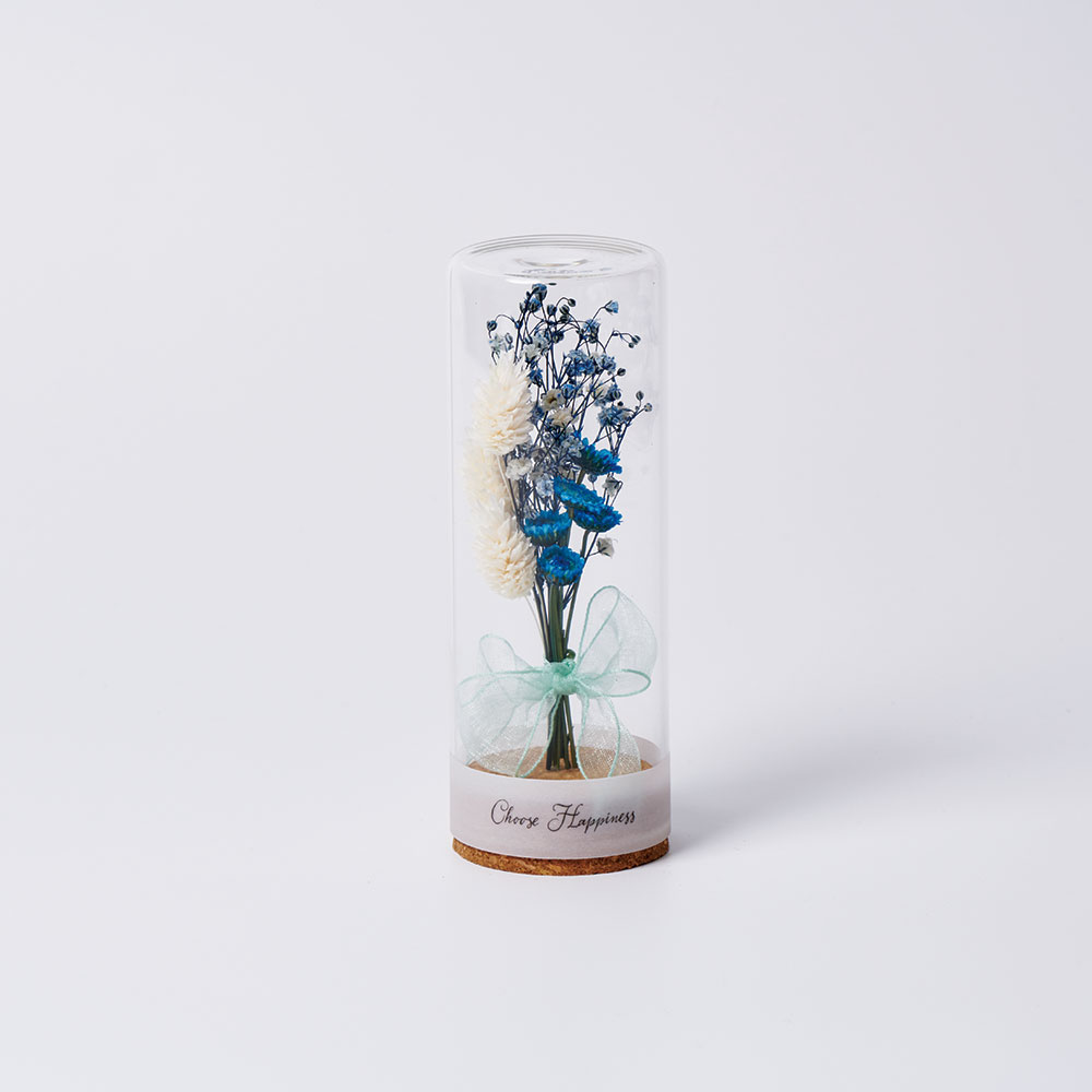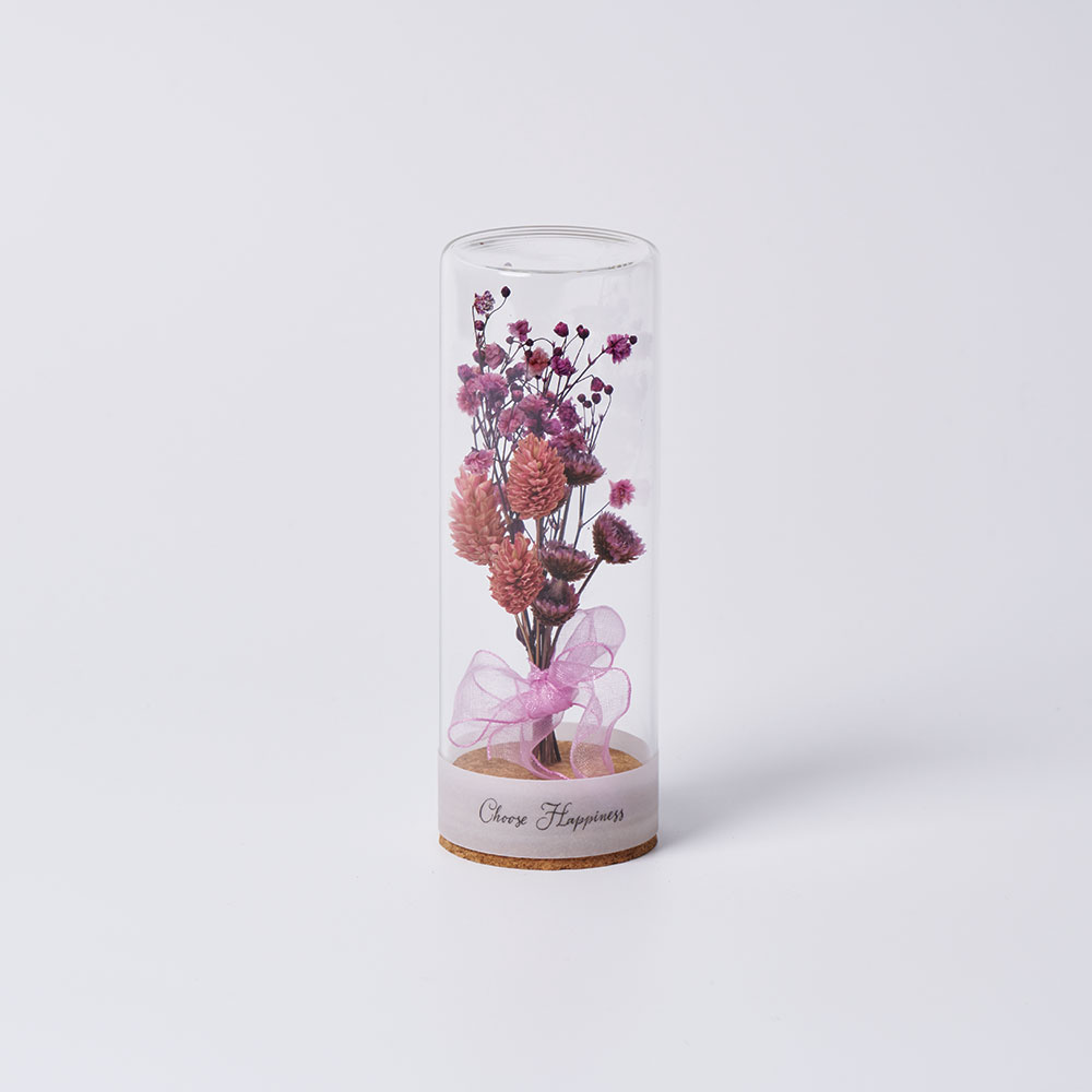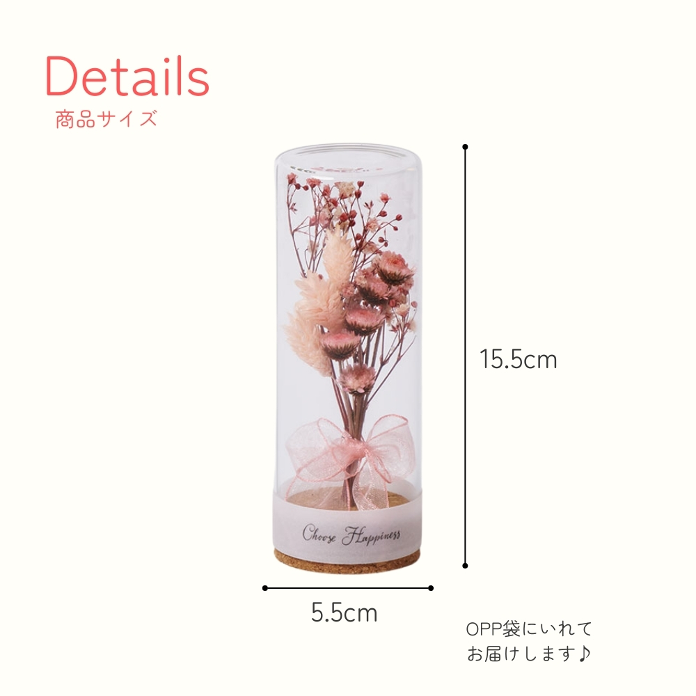 ドライフラワーの風合いを生かしたガラスボトル(4色展開)
