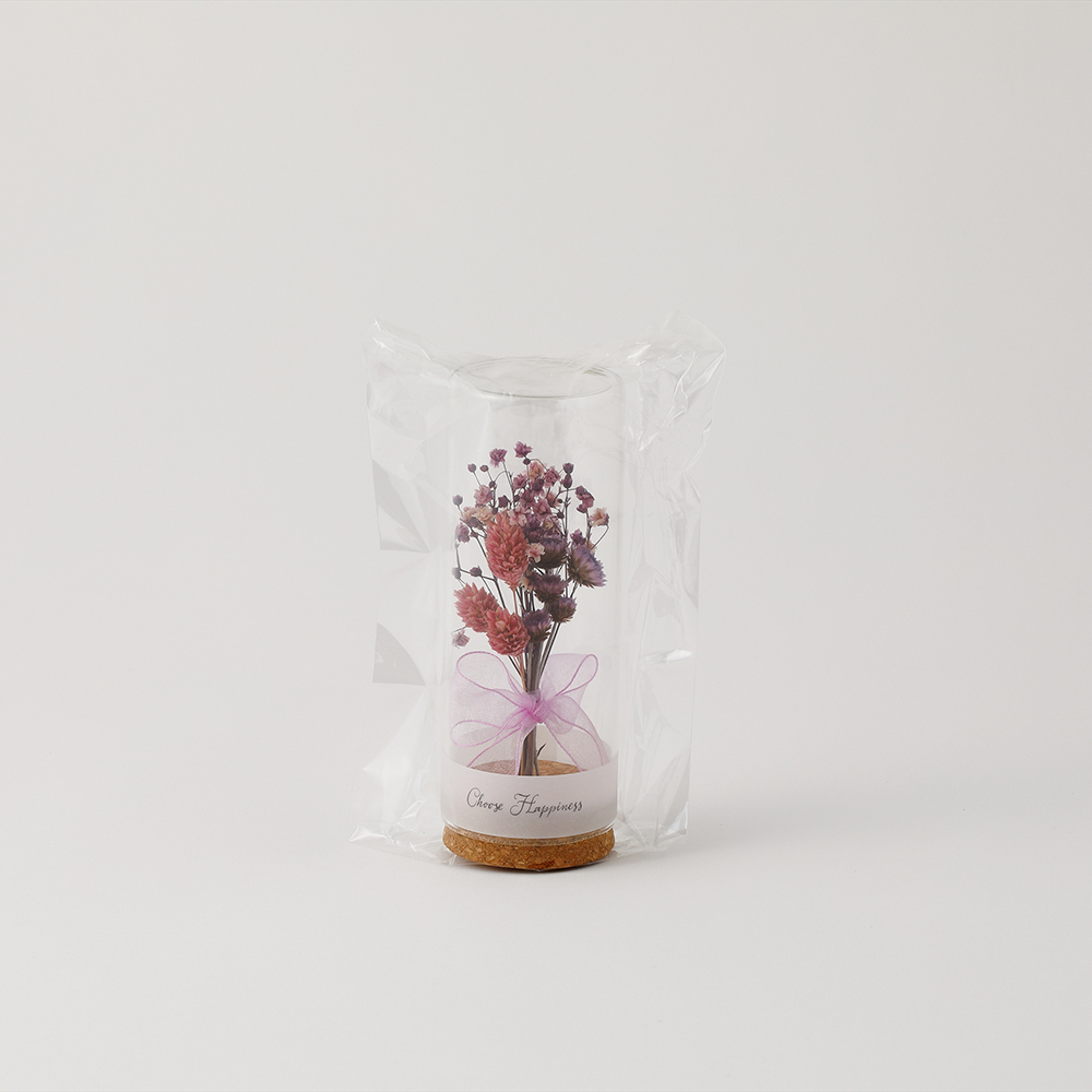 花そのものの風合いを生かした鮮やかなドライフラワーをボトルに詰め込んだインテリアオブジェ。丸型の筒に入ったコンパクトなサイズなのでどんな空間にも飾れます。自然の風合いをお楽しみいただけます。ピンク、イエロー、パープル、ブルーからお選びいただけます。