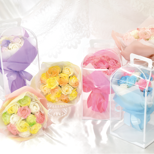 ソープフラワーとは、花びらを石鹸素材でつくったほのかに石鹸アロマ香るギフトにぴったりなお花です。 生花と違いお手入れ不要で、枯れることなく美しさをずっとキープできることもシャボンフラワーの大きな魅力です。