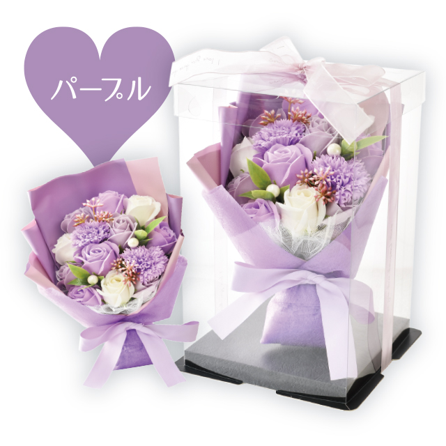パールと和紙風のラッピングが綺麗なソープブーケ(パープル)