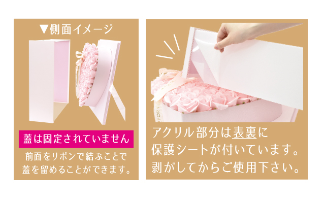 正方形のボックスにプリザーブドフラワーを敷き詰め、写真と一緒に飾れるお洒落なアイテム。
