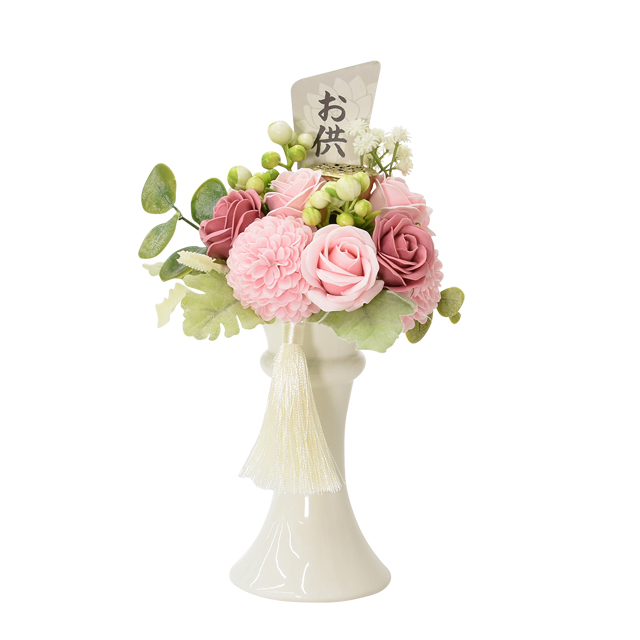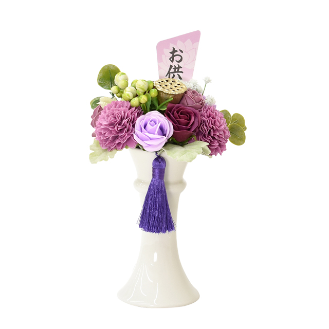 細身のシルエットが美しい仏花シャボン。ミニサイズのシャボンフラワーを組み合わせてボリュームたっぷりに仕上げました。花びら1枚1枚がせっけんの素材で出来た観賞用のお花です。