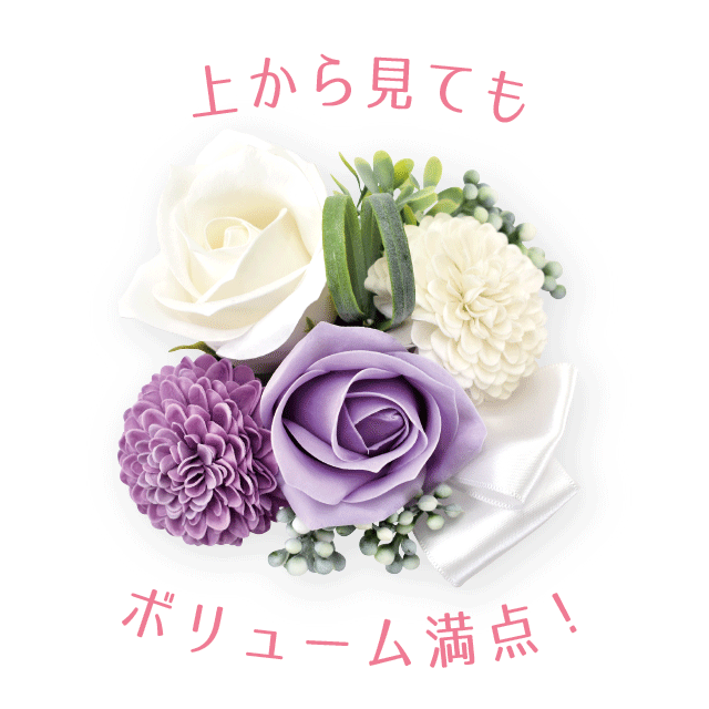 小さめサイズで軽量の手軽なお供えやインテリアに使えるシャボンフラワー。ペットのお供えにも使えるサイズです。小さいのでどんな場所にでもお供えできます。花びら1枚1枚がせっけんの素材で出来た観賞用のお花です。