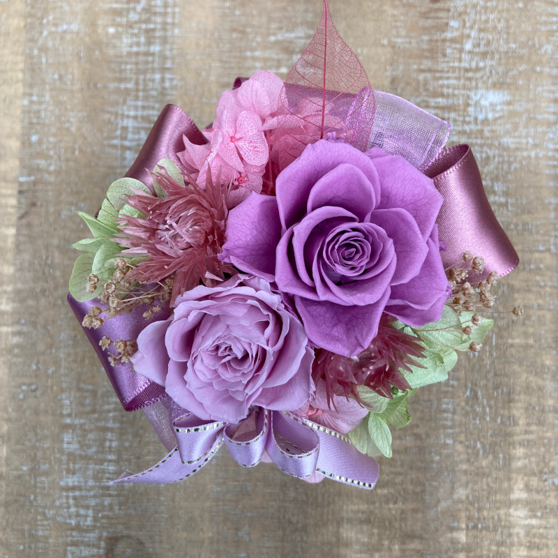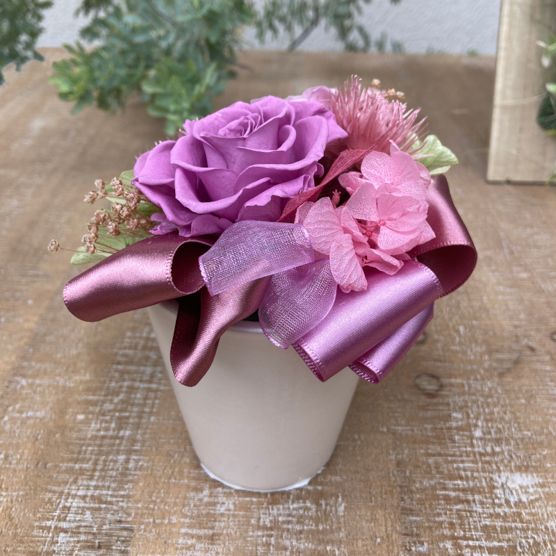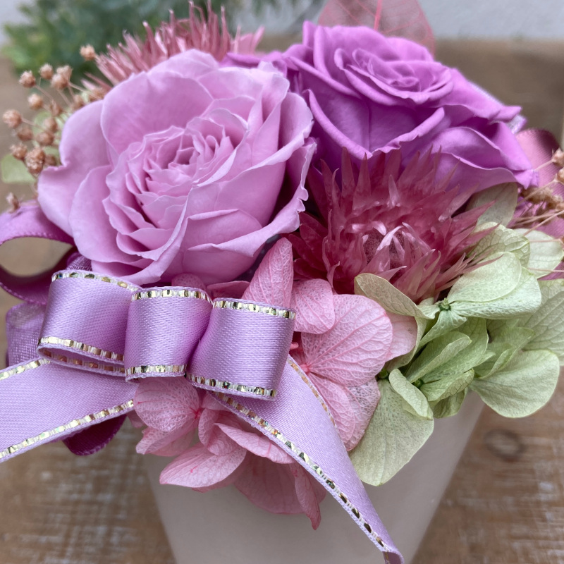 可愛いローズを使ったプリザーブドフラワーアレンジ(パープル)