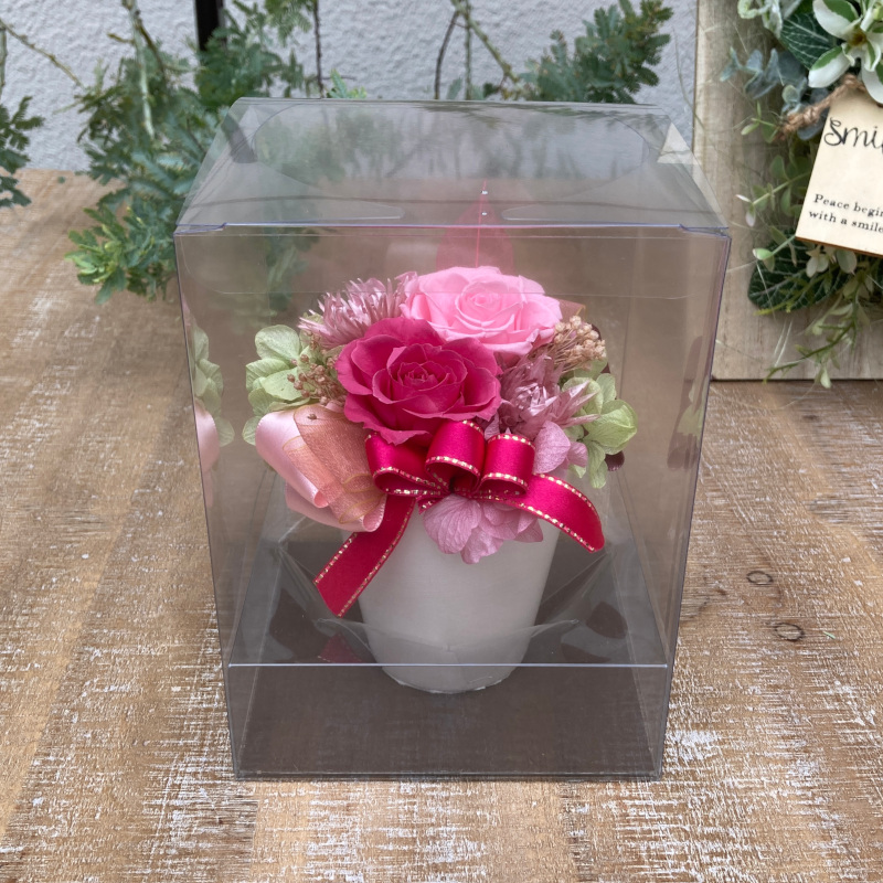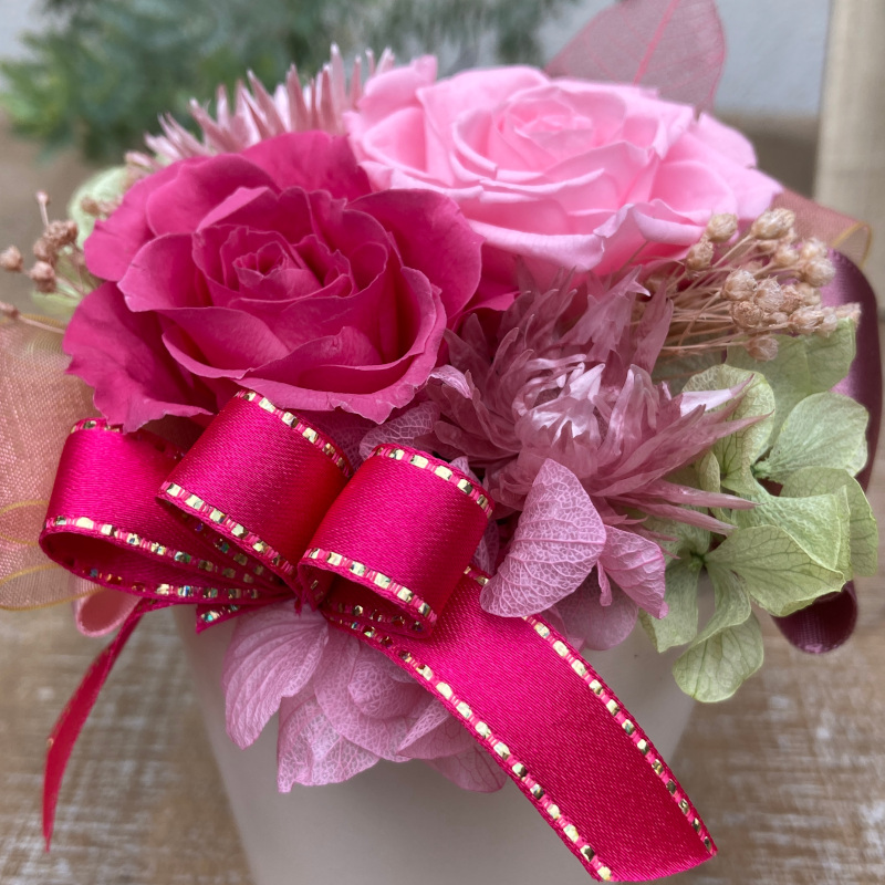 可愛いローズを使ったプリザーブドフラワーアレンジ(ピンク)