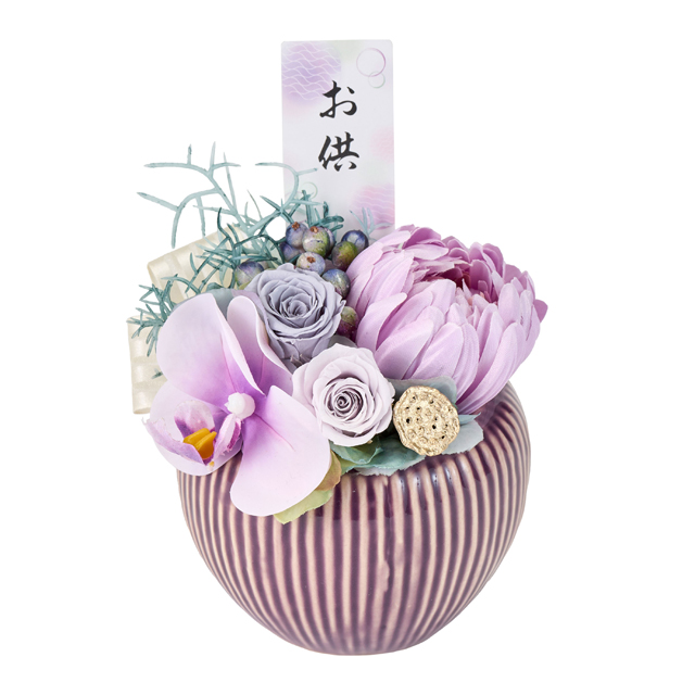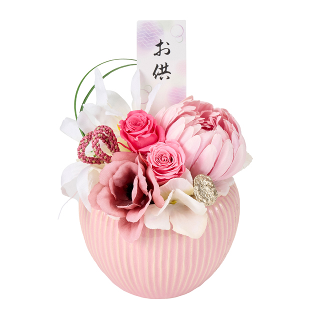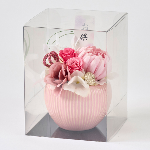 プリザーブドフラワーを生花を長期保存できるように加工したお花です。お手入れや水やりも不要で取り扱いやすい商品になります。コンパクトサイズなのでお仏壇やお供え用としてもお使いいただけます。
