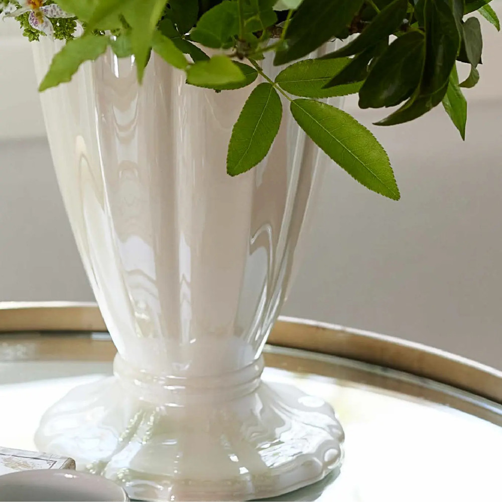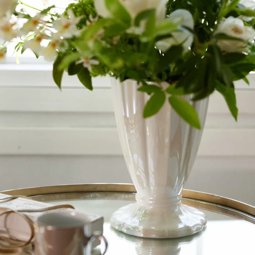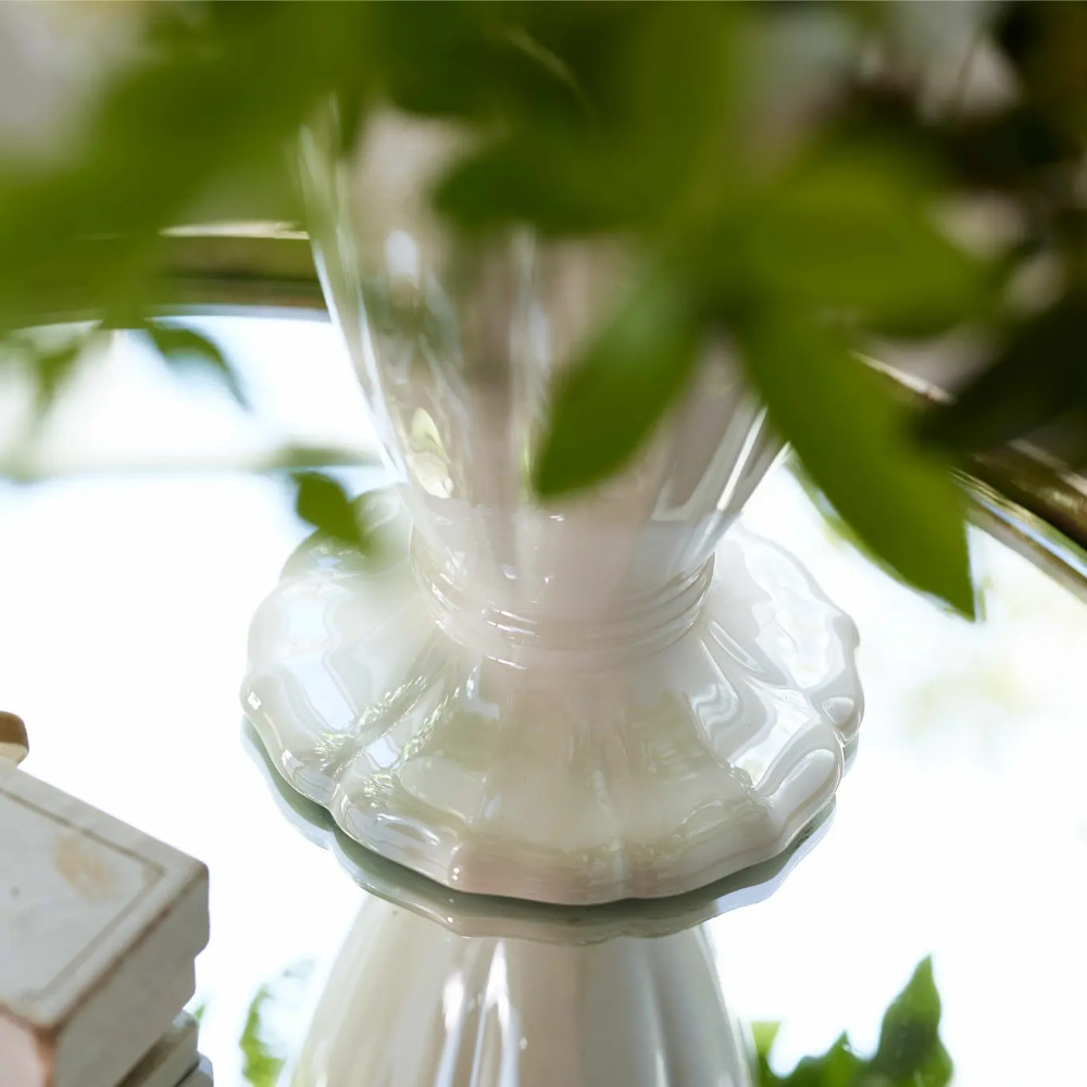 プリザーブドフラワーと可愛いホワイト花器を組み合わせたアレンジメント。