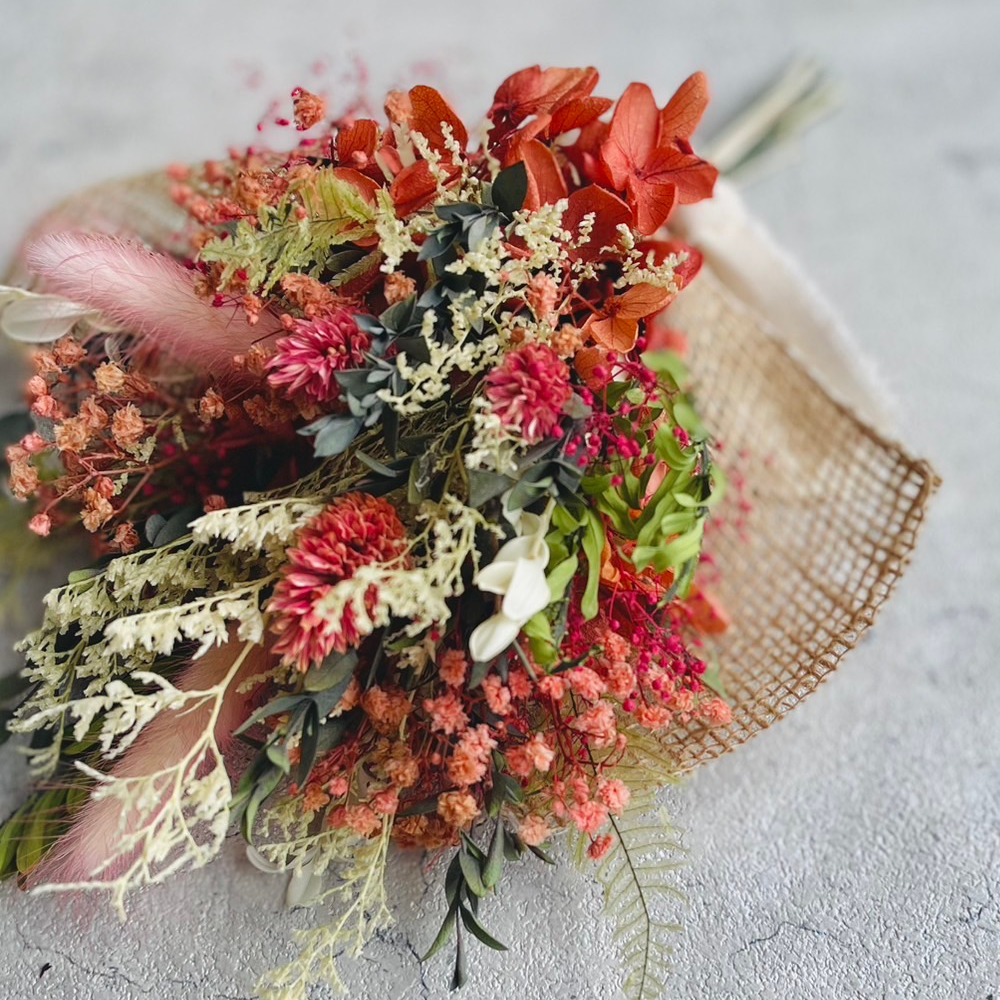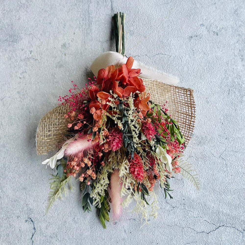 | 注意事項 | ※全て手作りで製作しております。 ※自然素材のため、葉や花びら、実が若干落ちる場合がございますが、これは商品不良ではありませんので予めご了承下さい。 ※北海道、沖縄、離島は別途送料が必要となります。 ※手作業での制作の為、掲載写真の色やサイズが多少異なる場合もございます。 |