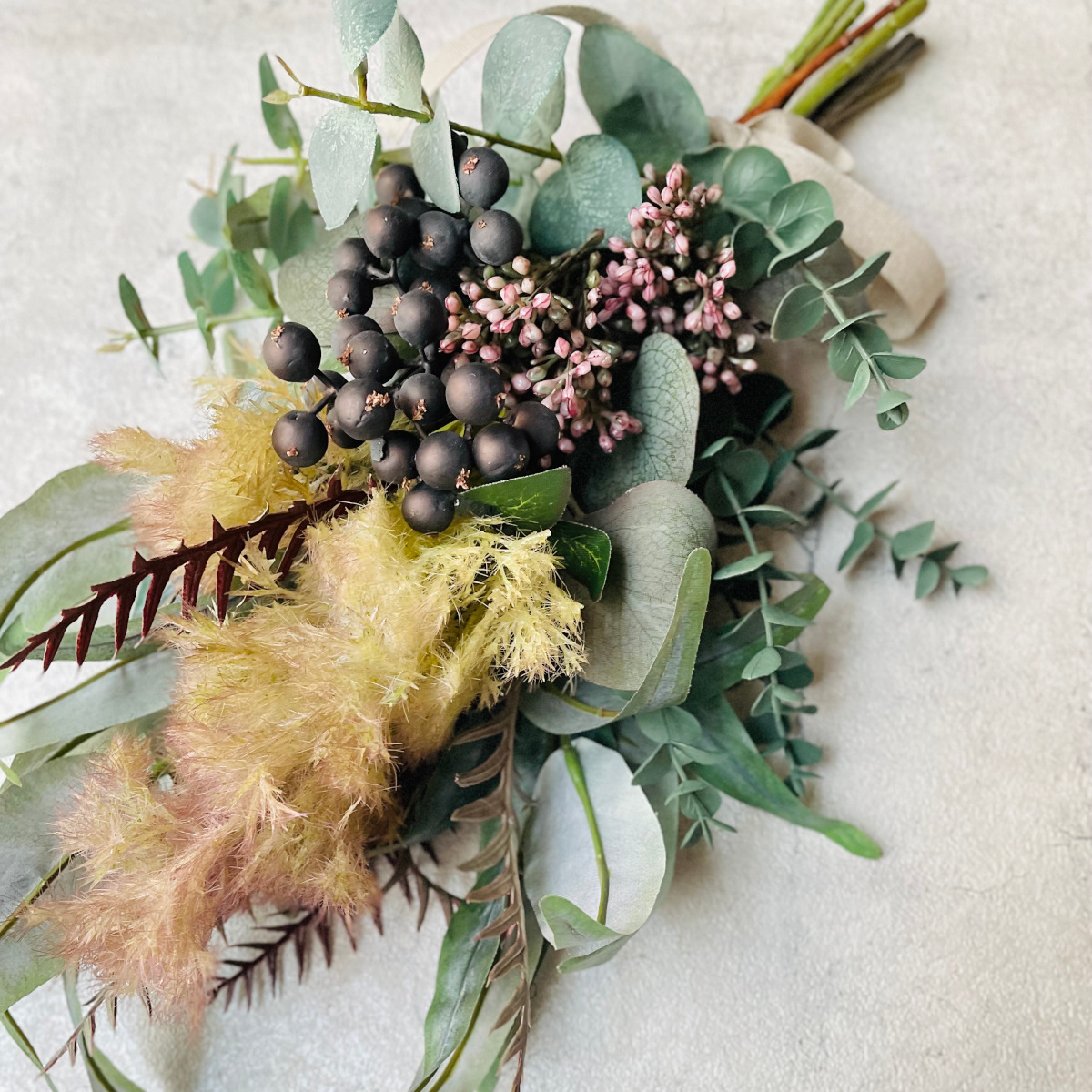 - ミモザとユーカリ、ベルギーナッツのスワッグ