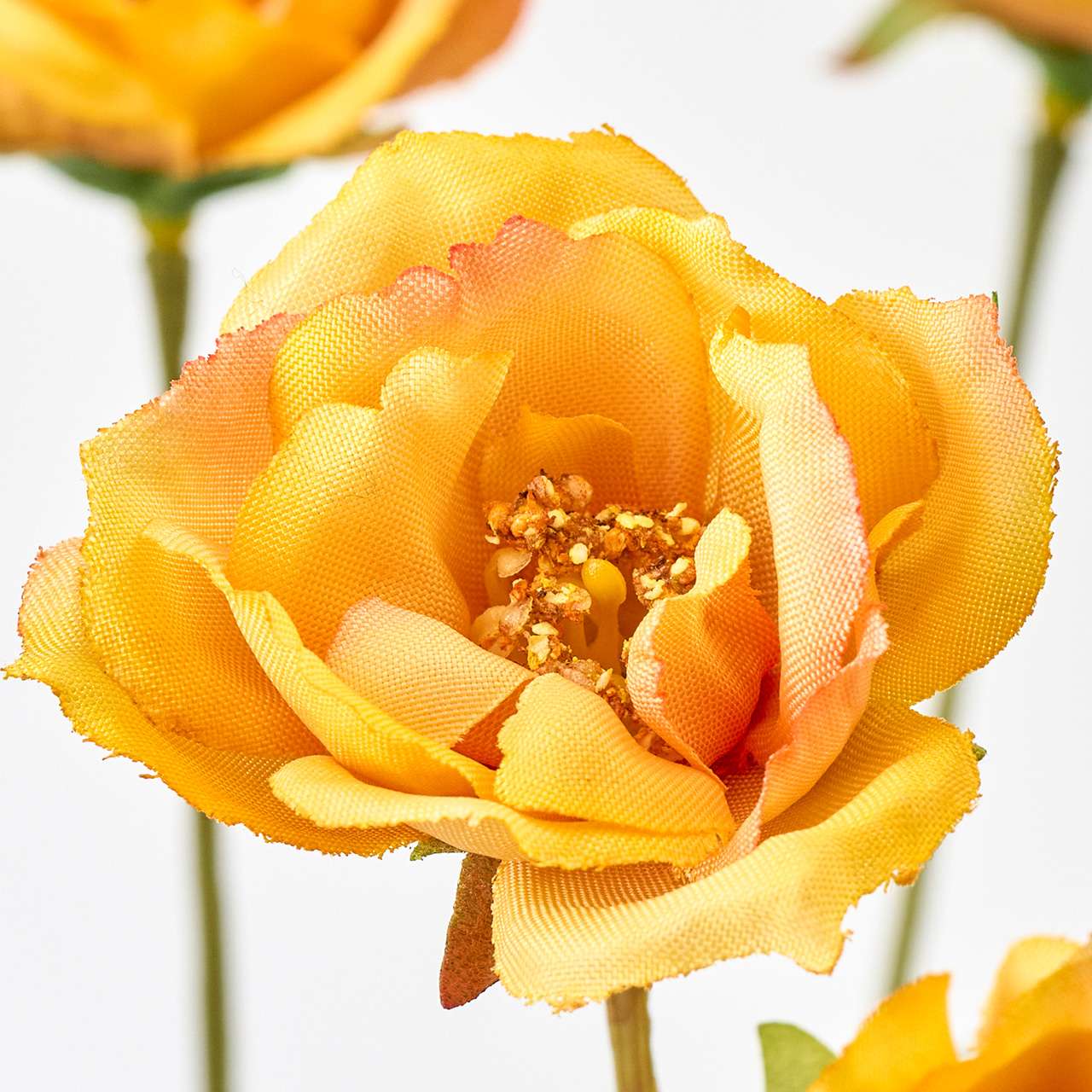 イエローオレンジのコローレローズ、アーティフィシャルフラワー 造花。花径3cmから4cmの小ぶりなローズ(バラ)が、バランスよく11輪付いたスプレータイプのアーテイフィシャルフラワーです。